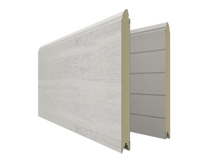 De Berger Wood-Line garagedeur is opgebouwd uit 40 mm dikke stalen sandwichpanelen met een isolerende, brandvertragende schuimkern die CFK-vrij is. Deze constructie is gelijk aan die van de Berger High-Line en zorgt voor uitstekende isolatie, stabiliteit en een lange levensduur.