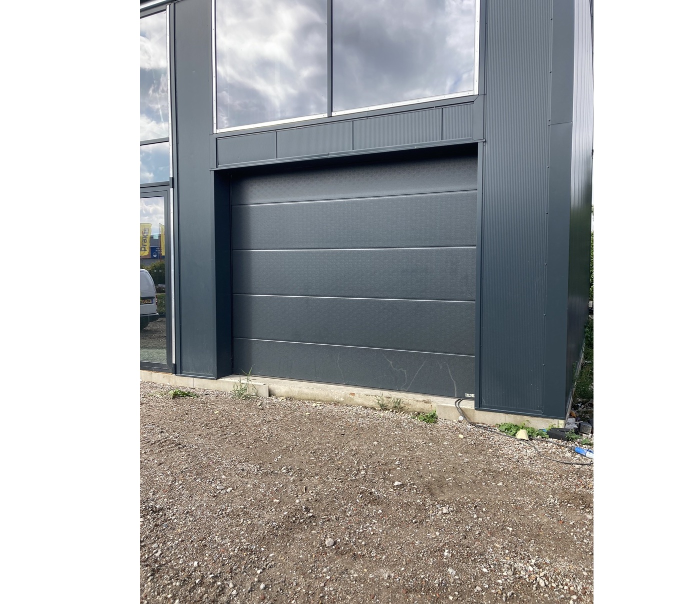 Voor een aannemer in Barendrecht hebben wij een industriedeur mogen leveren en monteren, uitgevoerd met Stucco Plano panelen in de kleur RAL 7016 (antraciet). Deze deur combineert gemak en functionaliteit met een moderne, professionele uitstraling, die perfect aansluit bij de uitstraling van het gebouw. De keuze voor het Stucco Plano paneel zorgt voor zowel een stevige structuur als een elegante afwerking, ideaal voor industriële toepassingen.